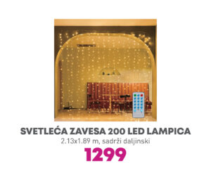 Ne može se bez svetlucavih detalja, tako možete pronaći veliki izbor LED lampica: višebojne, svetleću zavesu sa daljinskim upravljačem, u obliku pahulja, srca i perlica. Uz to, u ponudi su solarne lampice i lampa u obliku Deda Mraza, fotoritmički projektor, led neon lampa u obliku zvezde.