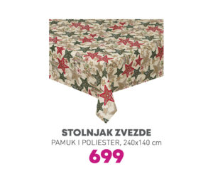 Dekorativni stolnjaci sa motivima pahulja, jelki i zvezdica, nadstolnjaci, podmetači od filca, kao i šolje, činije, tanjiri — sve to čini prazničnu trpezu lepšom i posebnijom. Za još topliju atmosferu, tu su dekorativni jastuci, karirana zavesa, mekano ćebe i navlake za stolice koje će vašem prostoru dati praznični izgled.