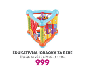 Ako želite da obradujete najmlađe, izbor je izuzetno širok: kocke, slagalice, guralice, podloge za igranje, dečiji stočići, lutke, bebe, princeze sa kočijama, setovi za ulepšavanje, nakit, vatrogasna vozila, motori, roboti, bageri i trkački automobili. Tu su i društvene igre i muzički instrumenti — električne gitare, bubnjevi, klaviri, vazdušni hokej i stoni fudbal.