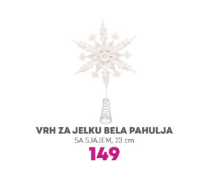 U ponudi vas čeka bogat izbor ukrasa: vrhovi za jelku u obliku zvezde ili pahulje, prekrivače kao postolja ispod jelke, raznobojne kugle, ukrasi u obliku srca, elegantni stalaktiti, kao i neobični motivi poput sladoleda na štapiću ili u kornetu. Zatim, drvene dekoracije poput konjića, Sneška Belića, ukrasne mašne, girlande i cveće sa klipsom koje će dodatno oplemeniti vašu jelku.